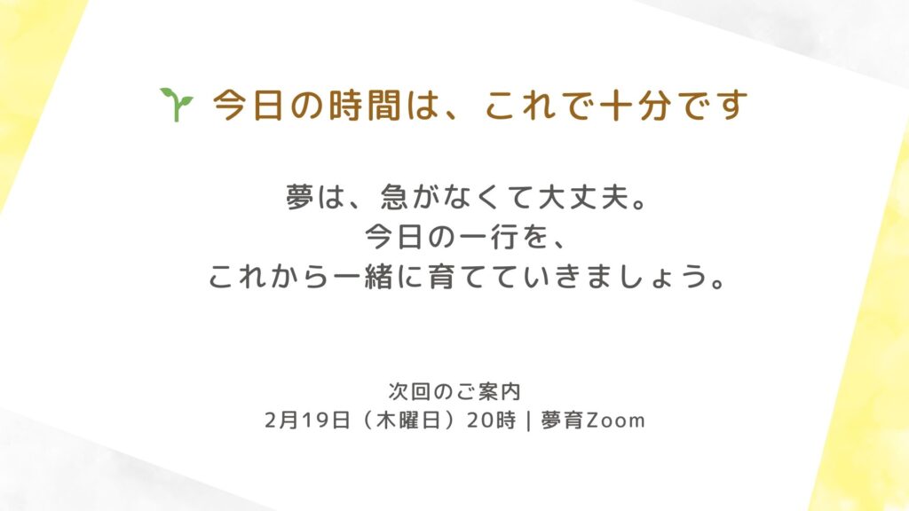 今回は、はじめてオンラインで顔を合わせる時間となりました。